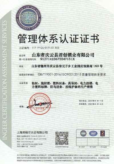 ISO9001认证证书
